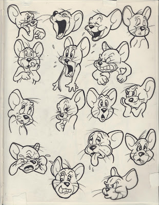This next piece is for a friend's band, and I'm still working on it. It's cartoony now so I will make it more "illustrative." It's pretty much a guy shooting death and I got the character's face by relooking at Chester Gould's, "Dick Tracey."Lastly, here are studies of Jerry that I copied and later inked.